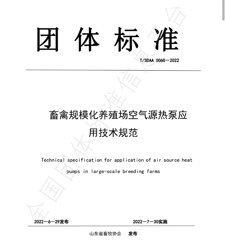 此背景下,山東省畜牧協(xié)會(huì)聯(lián)合山東省畜牧總站、EK空調(diào)等企業(yè),制定了《畜禽規(guī)模化養(yǎng)殖場(chǎng)空氣源熱泵應(yīng)用技術(shù)規(guī)范》。在清潔冷暖方面相關(guān)技術(shù)應(yīng)用標(biāo)準(zhǔn)缺失的國(guó)內(nèi)畜禽養(yǎng)殖行業(yè),該標(biāo)準(zhǔn)的制定可有效成為養(yǎng)殖行業(yè)清潔冷暖項(xiàng)目工程建設(shè)中的相關(guān)技術(shù)規(guī)范,讓養(yǎng)殖企業(yè)選擇空氣能設(shè)備時(shí)“有標(biāo)可依,有據(jù)可測(cè)”,讓畜禽養(yǎng)殖清潔冷暖項(xiàng)目工程質(zhì)量進(jìn)一步得到保障。