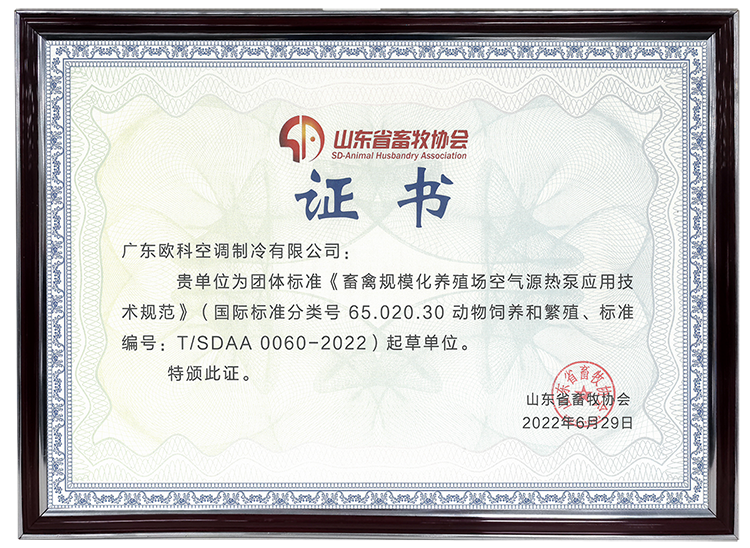 近日,經(jīng)山東省畜牧協(xié)會(huì)批準(zhǔn),團(tuán)體標(biāo)準(zhǔn)《畜禽規(guī)模化養(yǎng)殖場(chǎng)空氣源熱泵應(yīng)用技術(shù)規(guī)范》正式發(fā)布并實(shí)施。廣東歐科空調(diào)制冷有限公司(簡(jiǎn)稱:EK空調(diào))作為起草單位,參與了該標(biāo)準(zhǔn)的制定。