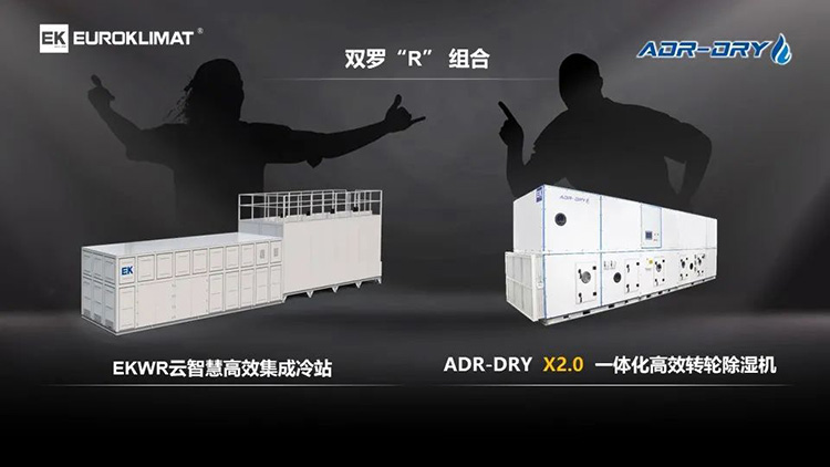 雙羅“R”組合由EKWR云智慧高效集成冷站和ADR-DRY  X2.0一體化高效轉輪除濕機組成。