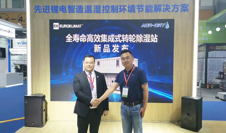 2023 世界電池產(chǎn)業(yè)博覽會(huì)期間,在廣東省電池行業(yè)協(xié)會(huì)秘書長唐長江,EK中國區(qū)市場營銷總監(jiān)兼IECD事業(yè)部總監(jiān)王健、兩廣區(qū)區(qū)總陽柳、IECD事業(yè)部經(jīng)理蔡曉輝等行業(yè)專家和企業(yè)領(lǐng)導(dǎo)的共同見證下,EK舉行了全壽命高效集成式轉(zhuǎn)輪除濕站新品發(fā)布儀式。