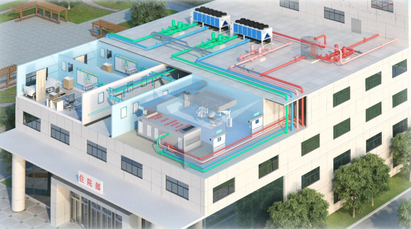 暖通空調(diào)系統(tǒng)作為醫(yī)院建設(shè)中最重要的基礎(chǔ)設(shè)施之一,主要起到調(diào)節(jié)環(huán)境溫濕度、交換室內(nèi)外氣體、防止交叉感染的作用。EK是擁有60年專業(yè)空氣環(huán)境控制歷史的歐洲品牌,在熱回收、兩端能力、精密控制方面有著核心的競爭優(yōu)勢。