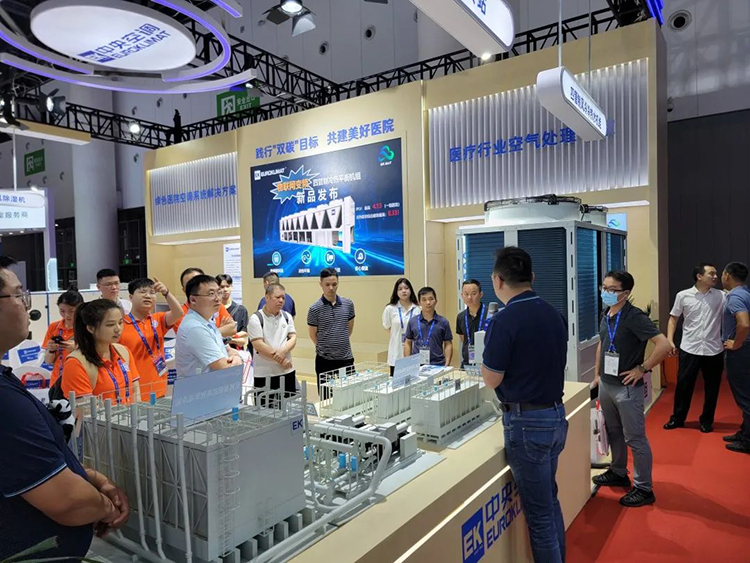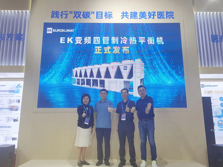 為推動“健康中國”戰略實施,加快推進美好醫院建設與高質量發展。6月17-19日,第二十四屆全國醫院建設大會暨國際醫院建設、裝備及管理展覽會”(簡稱 CHCC2023)在成都·中國西部國際博覽城隆重舉行。EK作為醫療行業空氣處理專家,攜溫濕度獨立調節新風除濕機、四管制冷熱平衡機、云智慧高效集成冷站等一系列全新升級的綠色醫院空調系統解決方案盛裝亮相。