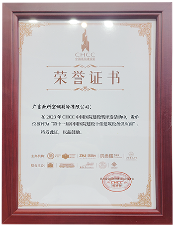 EK空調憑借出色的產品品質、過硬的工程質量和完善的服務體系,被評為“第十一屆中國醫院建設十佳建筑設備類供應商”。