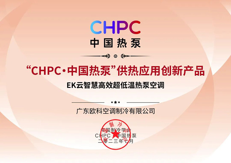 權(quán)威認可!EK超低溫熱泵榮獲“CHPC·中國熱泵”供熱應用創(chuàng)新產(chǎn)品獎!