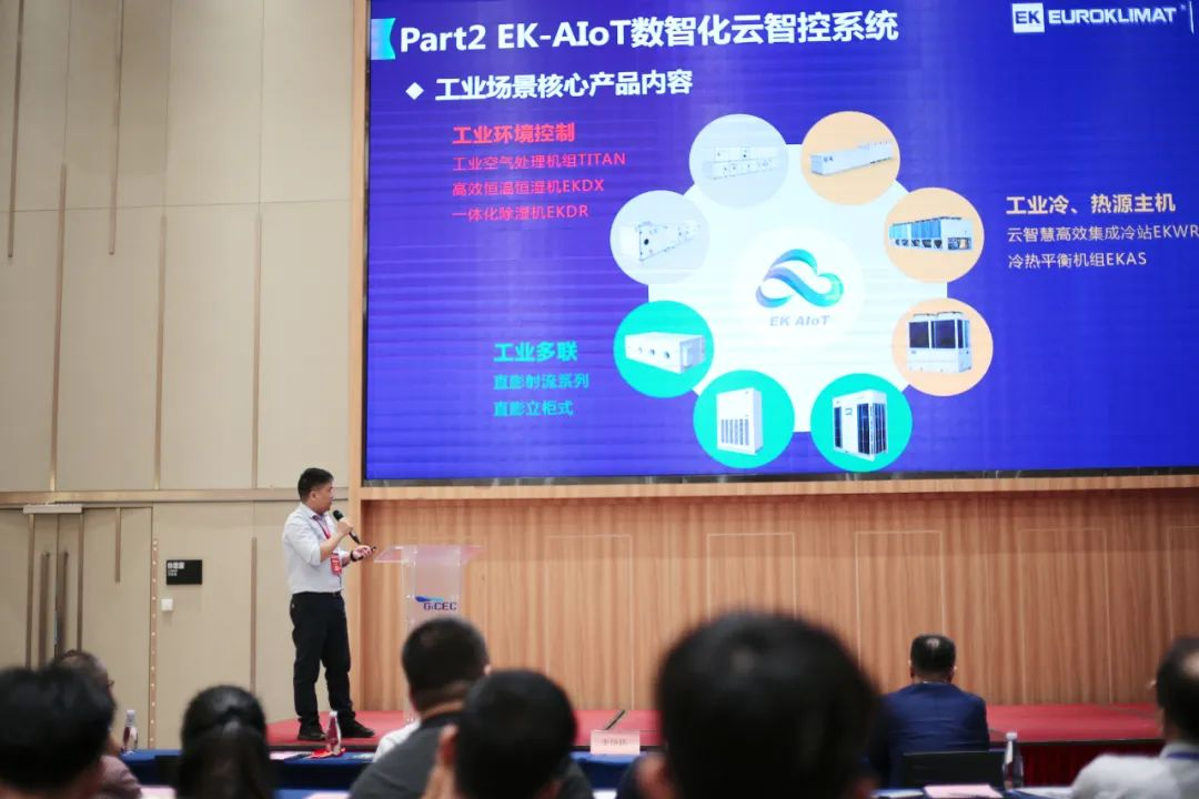 在“2023全生命周期高效機房論壇”上,EK智慧云事業部高級經理李友良發表了《EK-AIoT云智控平臺高效機房數智化應用》的主題演講,指出了高效機房系統的實施難題和運維管理問題,并重點介紹了EK-AIoT工業數智化云智控平臺的應用以及EK分布式高效集成冷站方案。