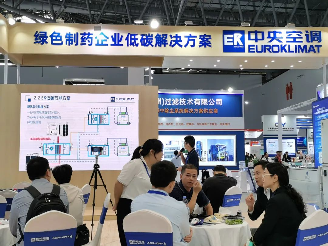 在本次藥機展上,EK展示了ADR-DRY X1一體化節能型轉輪除濕機組、低碳恒溫恒濕機組、四管制冷熱平衡機組、云智慧高效集成冷站等高效節能空調產品和解決方案在制藥行業的場景應用,凸顯了EK低濕環境節能方面和工藝冷、熱水節能方面的優越性,獲得了行業專業人士的高度關注與好評。