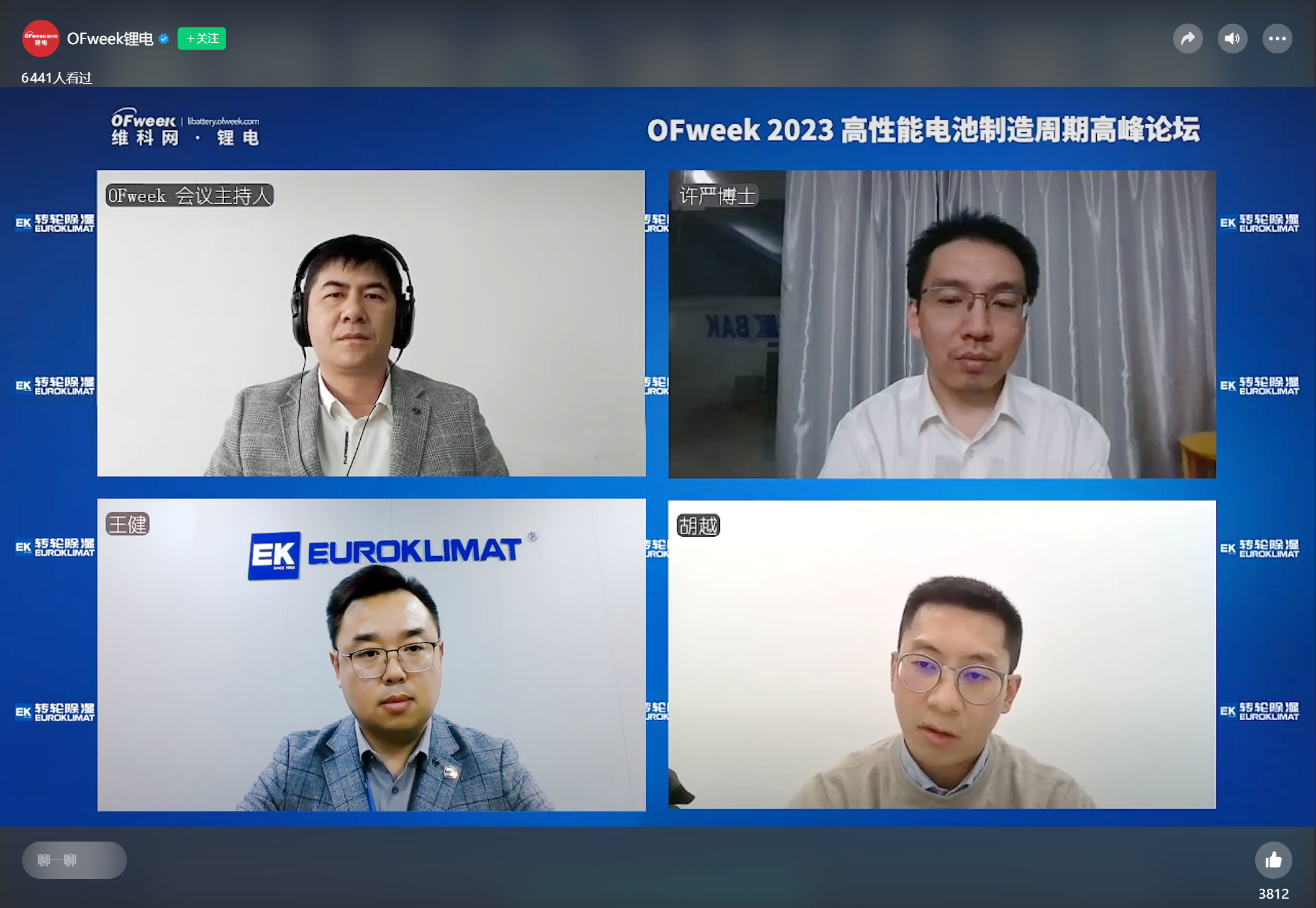 12月19日,由OFweek維科網,維科網鋰電主辦的OFweek 2023高性能電池制造周期高峰論壇通過線上直播的形式召開。作為本次論壇的贊助單位,EK工業空調中國區市場營銷總監兼IECD事業部總監王健發表專題演講并參與圓桌對話,與其他產業鏈領軍領導共同探討新格局下行業發展的機遇及挑戰,共促產業融合、創新發展。