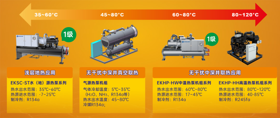 EK空調(diào)的寬溫區(qū)水(地)源熱泵產(chǎn)品系列,憑借其高效、綠色、穩(wěn)定、智能等優(yōu)勢,在地?zé)崮茴I(lǐng)域展現(xiàn)出強(qiáng)大的競爭力。基于此,徐楓林展開介紹EK空調(diào)涵蓋常溫系列、中溫系列、高溫系列和氣源系列的熱泵機(jī)組產(chǎn)品陣容。