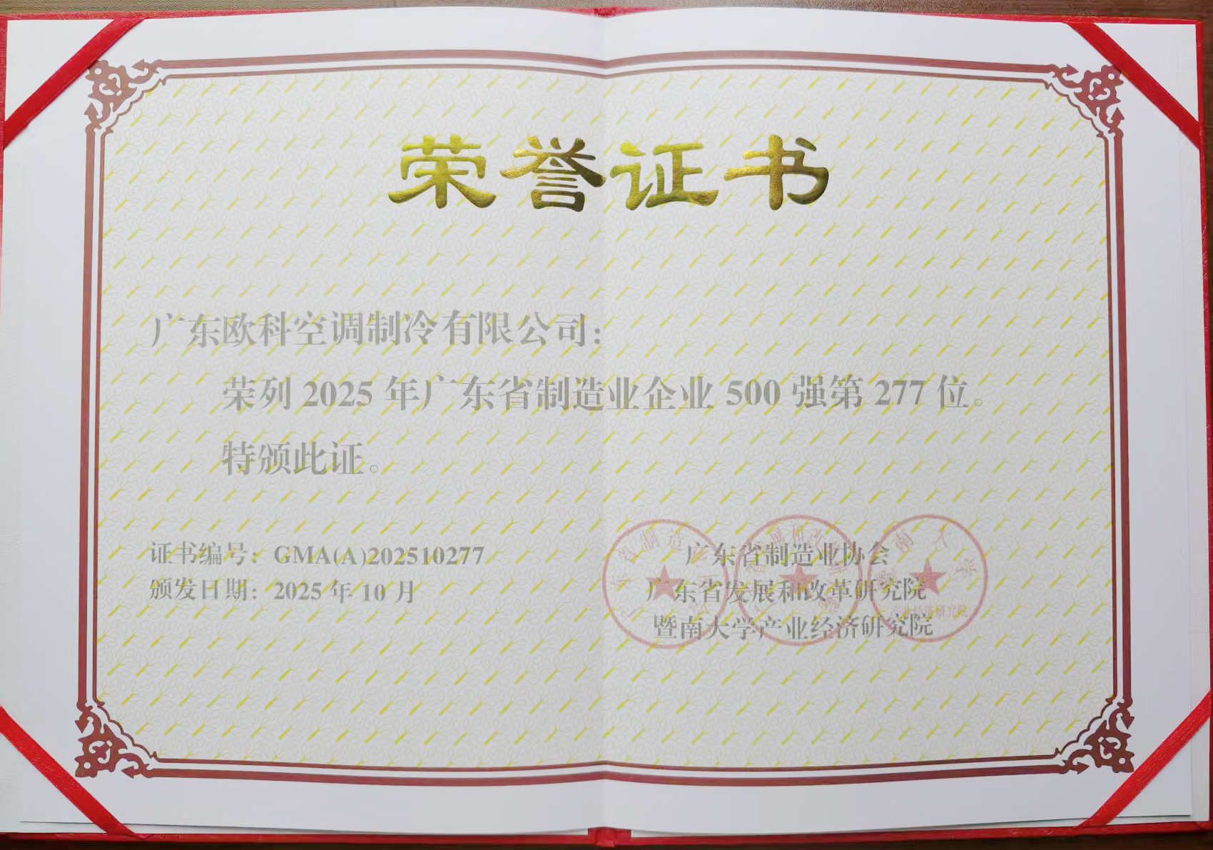近日,2025年廣東省制造業500強企業峰會在東莞舉行,會上正式發布“廣東省制造業企業500強”榜單。 EK空調憑借領先綜合實力與強勁發展勢頭,再度榮耀登榜,位列第277名!