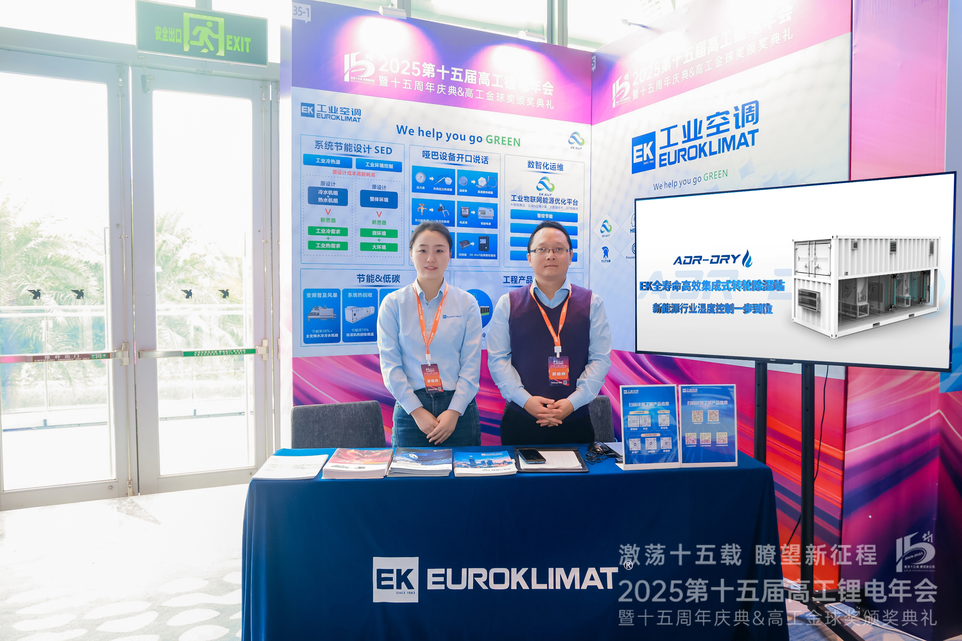 EK工業空調專注工業環境控制60余年,始終致力于提高能源利用效率和可再生能源應用。本次大會現場,EK工業空調設立專屬展位,技術工程師團隊為現場嘉賓詳細講解應用于新能源鋰電生產的環境控制產品與節能降碳方案,獲得與會者的廣泛關注與好評。